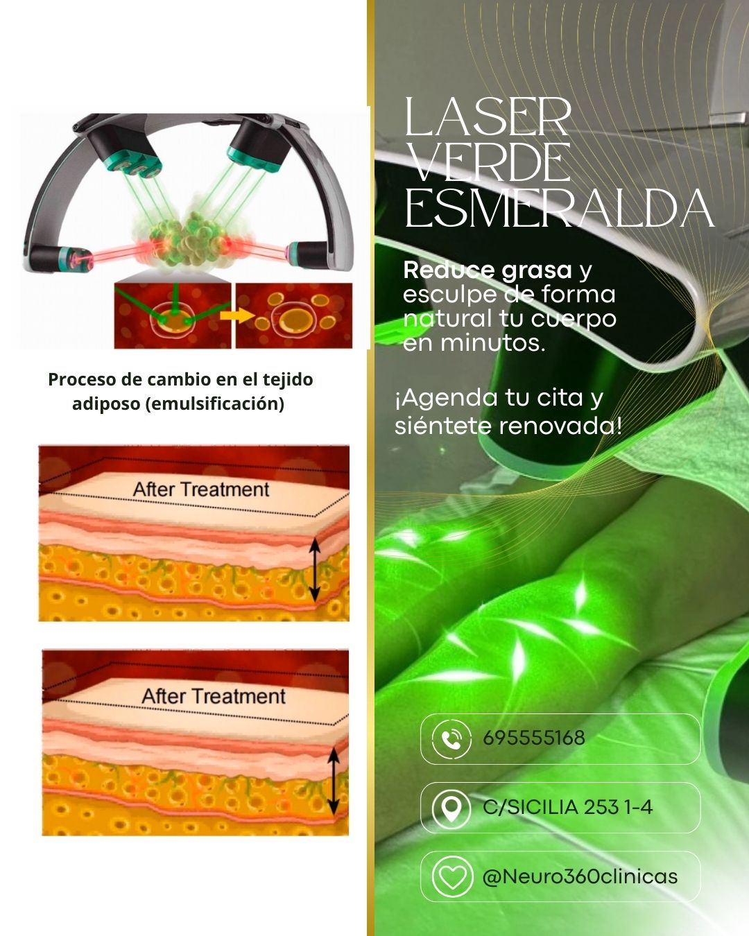 El Láser Verde Esmeralda es una tecnología avanzada de estimulación metabólica no invasiva orientada al modelado corporal, la reducción de grasa localizada y la optimización de los procesos energéticos del organismo, sin cirugía ni tiempo de recuperación.